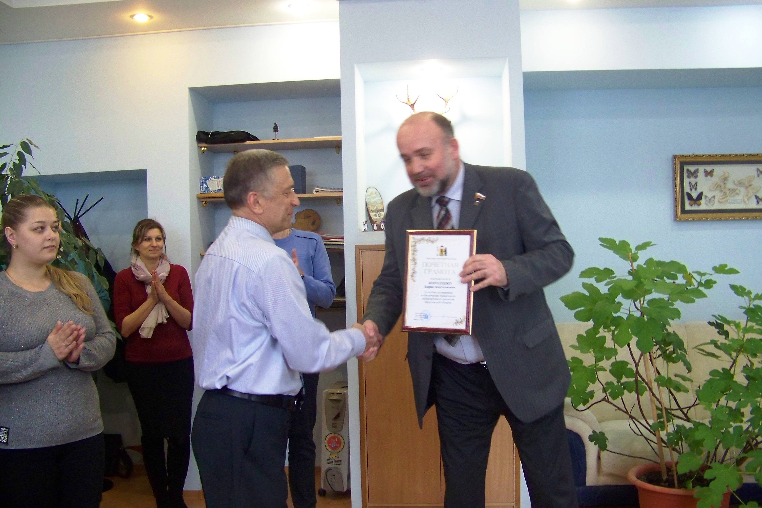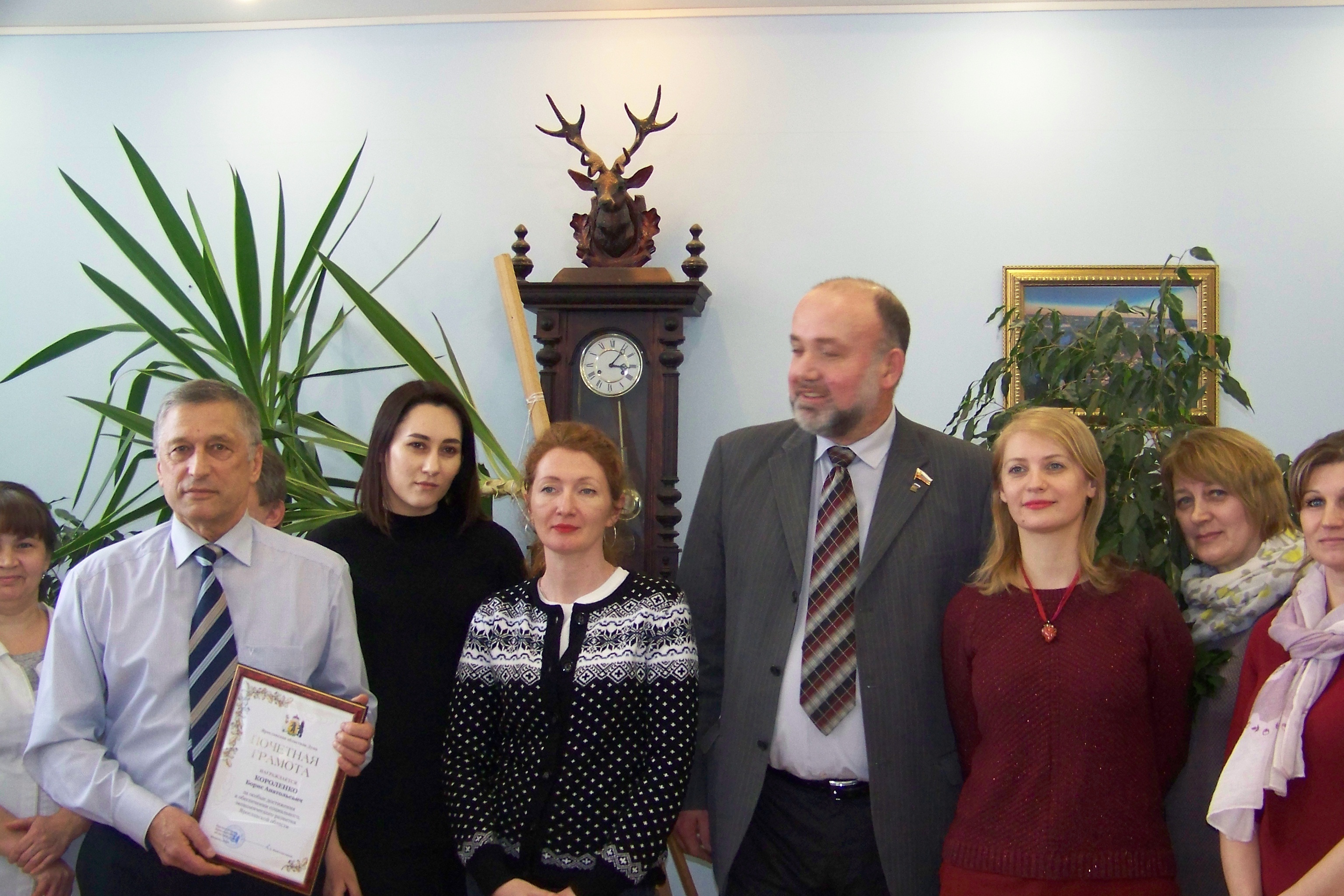 Закончилось посещение часового производства награждением Почетной грамотой Ярославской областной Думы ветерана часового производства Короленко Бориса Анатольевича за многолетний добросовестный труд в сфере машиностроения, большой вклад в экономическое развитие Ярославской области.