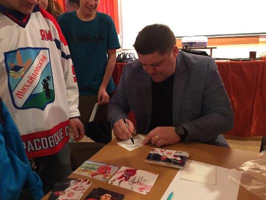 Собравшиеся интересовались и спортивной карьерой хоккеиста, и развитием спорта в сельских территориях.