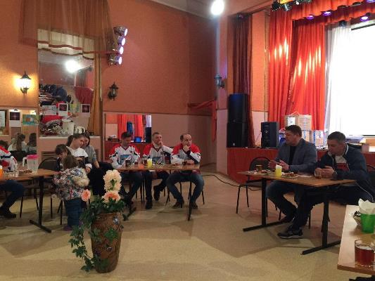 Приятным моментом встречи стали не только поздравления с прошедшим накануне Днём защитника Отечества, но и подарки Андрея Коваленко сборной Некрасовского поселения по хоккею - новые командные свитера.